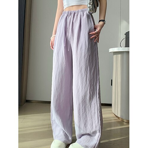 Per donna Pantaloni in cotone e lino Gamba larga Chinos Vacanza Essenziale Casual Lunghezza intera Vita Alta Semplice Tasca Fascia Elastica Comodo Comodità Morbido Elasticizzato All'aperto Streetwear