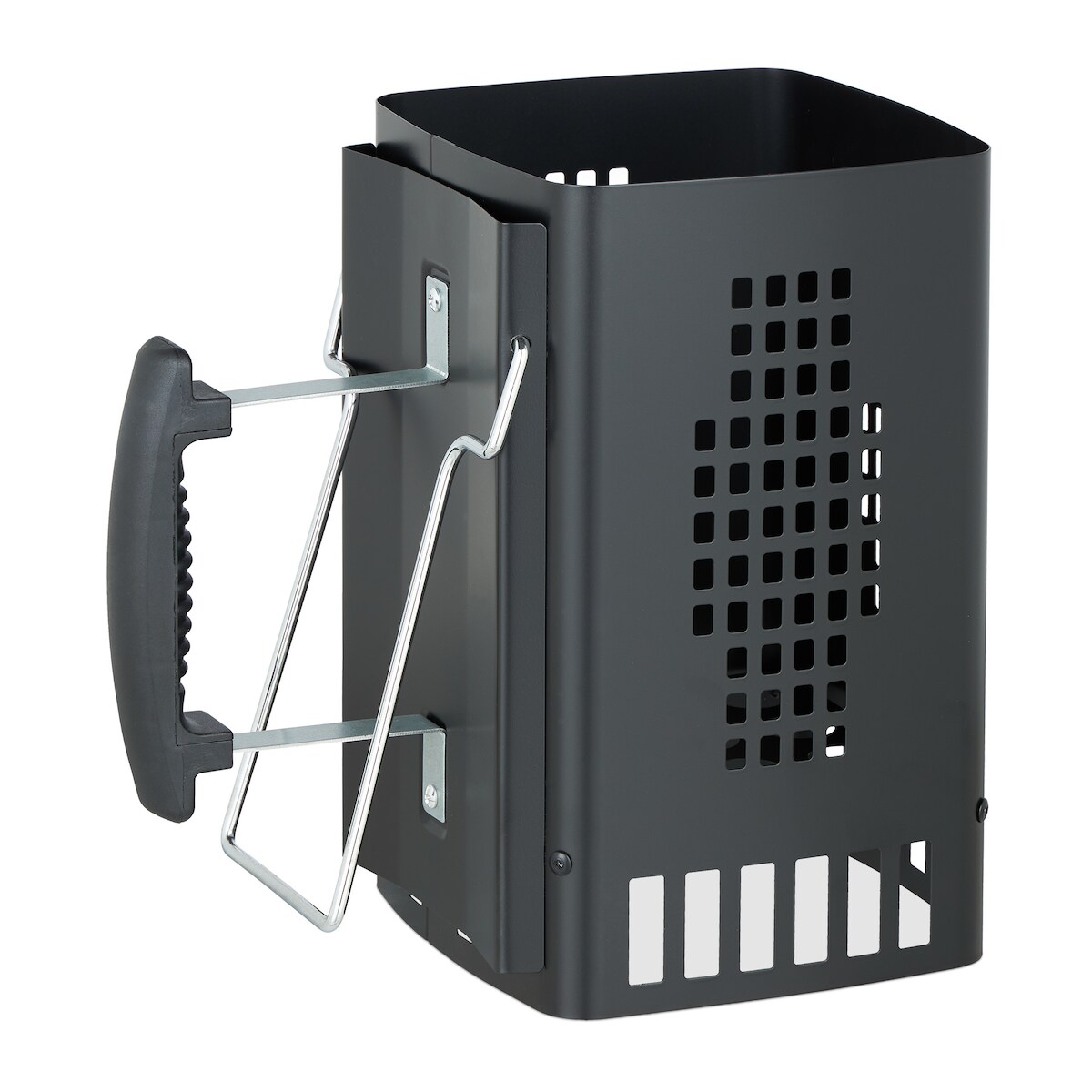 Relaxdays Anzündkamin Grill, mit Sicherheitsgriff & Haltebügel, HBT: 27 x 28 x 17 cm, Anzündhilfe Grillkohle, schwarz