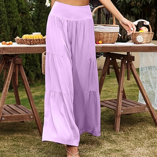 Per donna Gamba larga Chinos Casual Lunghezza intera Naturale Tinta a nodi Gamba larga Coulisse Comodo Traspirabilità Casual Quotidiano Rosso Blu Azzurro cielo Viola Primavera Autunno Vestibilit