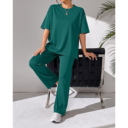 Per donna Moda Streetwear Set di Pantaloni Bolero Top Manica Corta Girocollo Tinta unica Patchwork Casuale Quotidiano All'aperto Blu Rosso Azzurro cielo Estate Vestibilità regolare