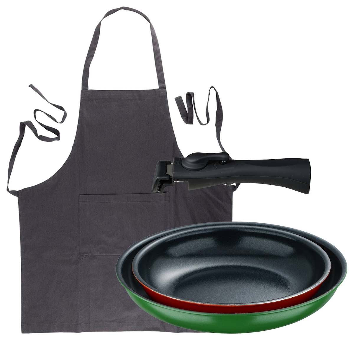 BERGNER - Set aus 2 Pfannen Ø22/26 cm gepresstes Aluminium mit abnehmbarem Griff mit Kochschürze Dunkelgrau 100% Baumwolle 75x80 cm