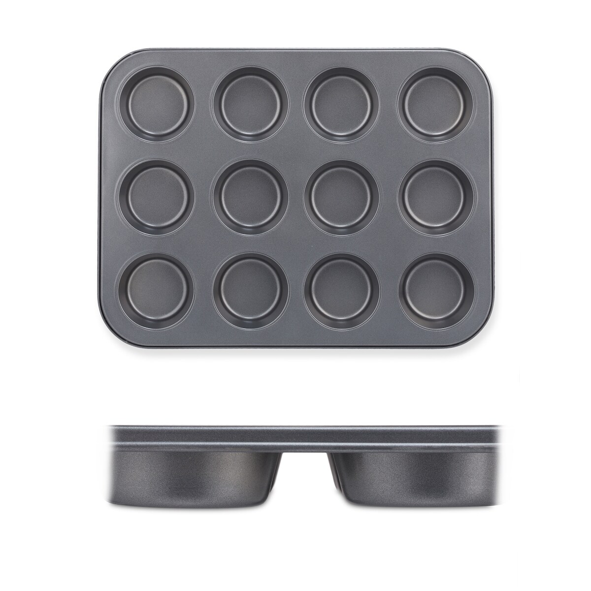 Relaxdays Muffinform, 2er Set, 12er Muffinbleche, antihaftbeschichtet, Carbonstahl, Muffins & Cupcakes, Ø 6,5 cm, grau