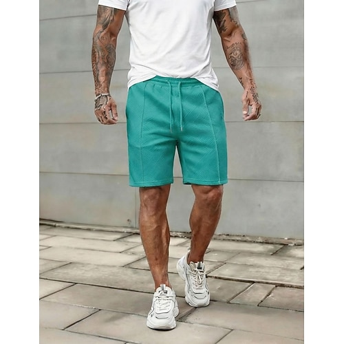 Herren Shorts Sommershorts Strandshorts Freizeitshorts Kordelzug Elastischer Bund Strukturiert Einfarbig Komfort Atmungsaktiv Kurz Täglich Outdoor Ferien Urlaub Mode Schwarz Weiß Mikroelastisch