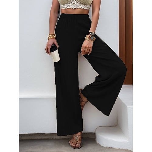 Per donna A zampa Pantaloni Di tendenza Lungo Liscio A zampa Traspirabilità Comodo Media elasticità Casual / quotidiano Nero Marrone Cachi Grigio Primavera estate Standard