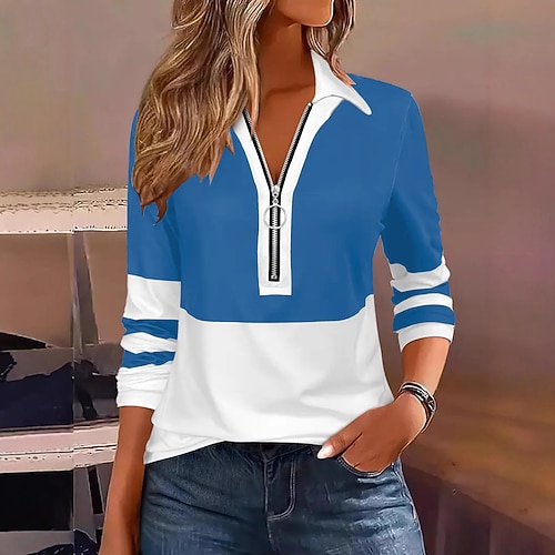 Per donna Tunica Tinta unica Blocco di colori Elegante Vintage Essenziale Manica Lunga Girocollo Top Regolari Quotidiano Zip a un quarto Nero Vino Blu Marrone Verde Primavera Autunno