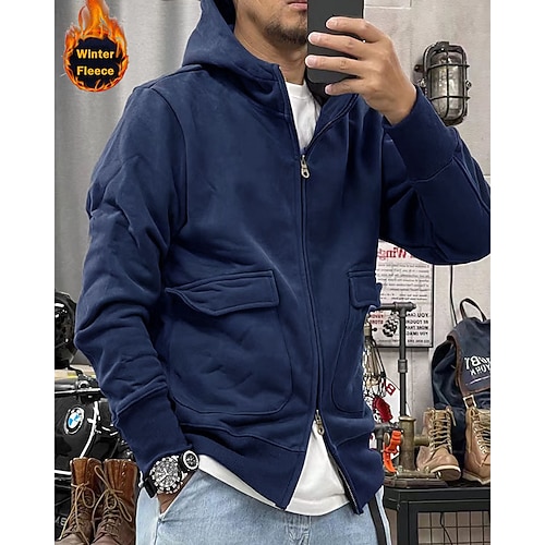 Per uomo Felpa con cappuccio Felpa con cappuccio a zip intera Felpa con cappuccio e zip Giacca in Pile Nero Blu Reale Cachi Grigio Con Cappuccio Semplice Con zip Tasca Sport Outdoor Quotidiano Ferie
