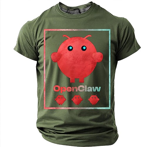 Herren-T-Shirt mit Maskottchen-Roboter-Openclaw-KI-Hummer-Tech-Geek-Programmierer-KI-Agent-Motiv, Grafik, normale Passform, Kurzarm, Rundhalsausschnitt, Freizeitkleidung, Designer-Bekleidung, Größen: