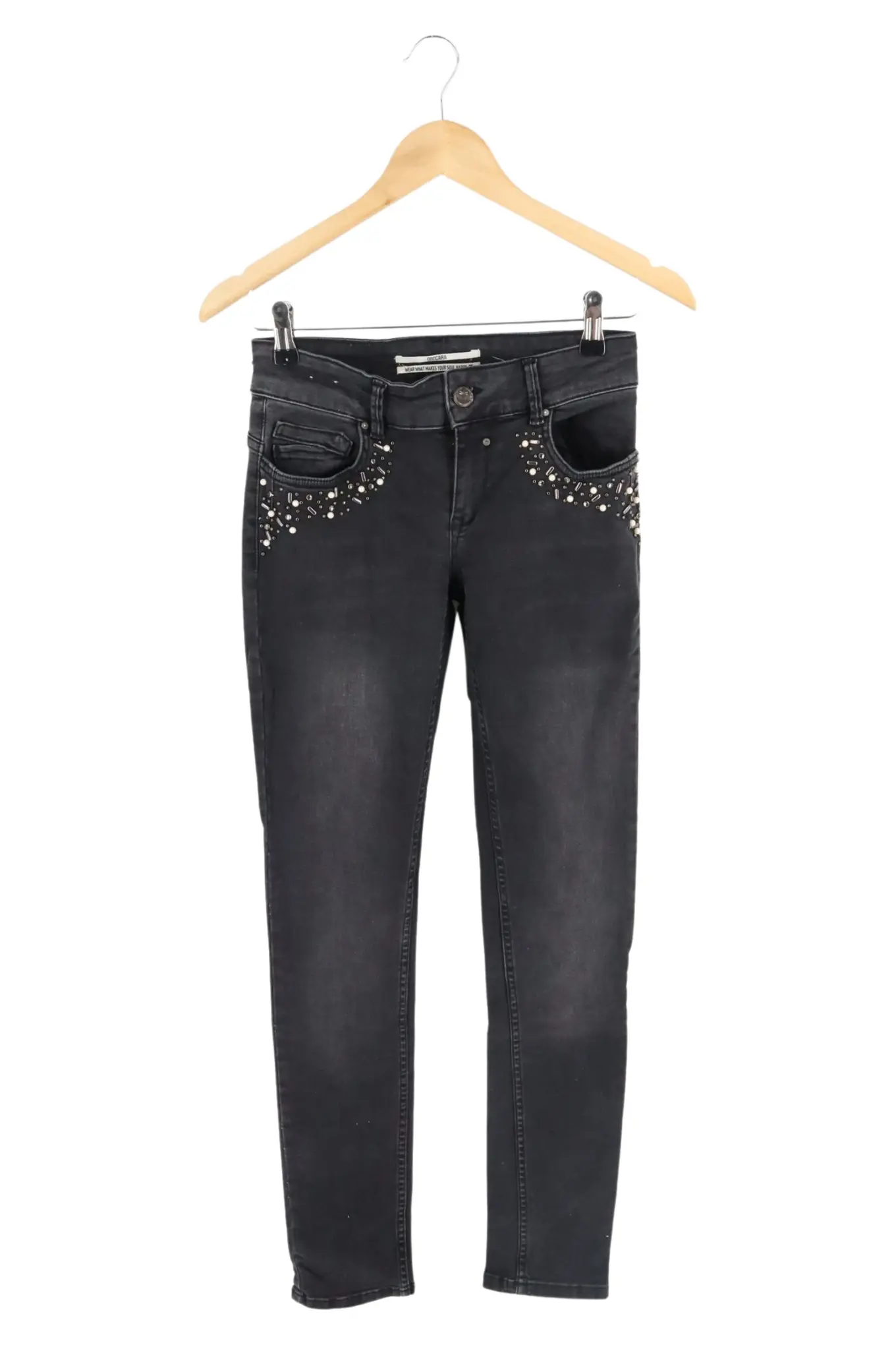 COCCARA Jeans Slim Fit Damen Schwarz Gr. W25 Nieten