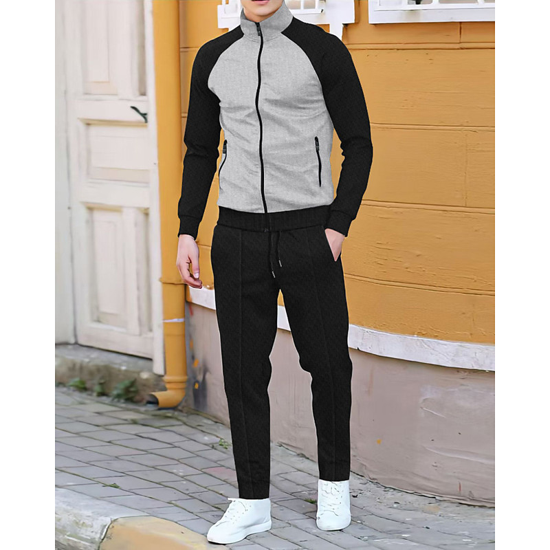 Men's Tracksuit Sweatpants Track Top Zipper 2 Piece Solid Colored Clothing Suit Fall Black White Gym Athleisure Running Windproof Long Sleeve Sport Activewear Stretchy Regular Fit