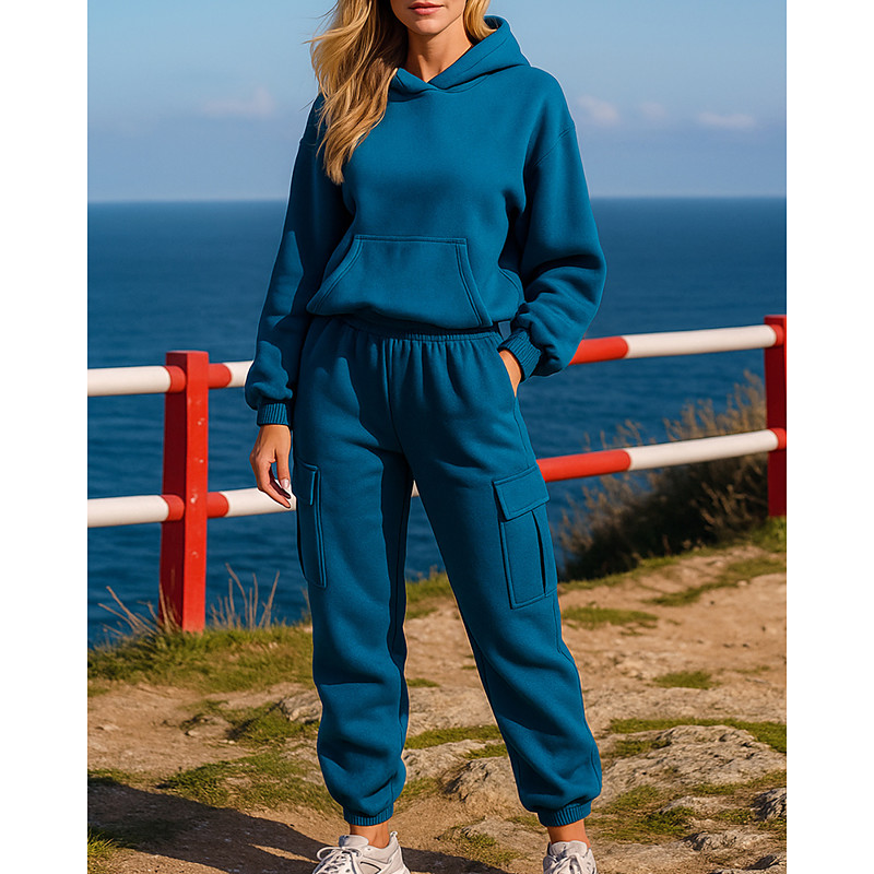 Women's Pullover Sweatsuit Sets 2 Piece Tracksuit Lounge Outfits with Pocket Solid Colored Clothing Suit Fall Dark Grey Black Spandex Gym Running Fitness Breathable Long Sleeve Sport Activewear