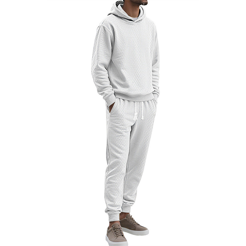 Men's Tracksuit Outfit Set Hoodies Set Hoodie Outdoor Daily Sports Jacquard Drawstring Plain Black White Khaki Activewear Fashion Streetwear Spring