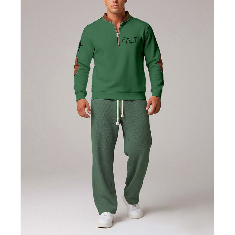 Men's Sweatshirt Tracksuit Sweatpants Outfit Set Stand Collar Outdoor Daily Sports Drawstring Half Zip Color Block Letter Blue Black White Activewear Fashion Streetwear Spring