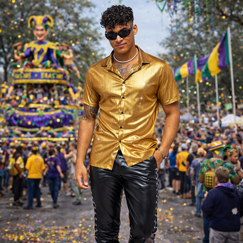 Mardi Gras 2026 Retro Vintage 1970s Shirt Disco Shiny Metallic Fancy Dress Men's Carnival Costume Christmas Halloween Carnival Club Theme Party Pride Parade Adults' Shirt