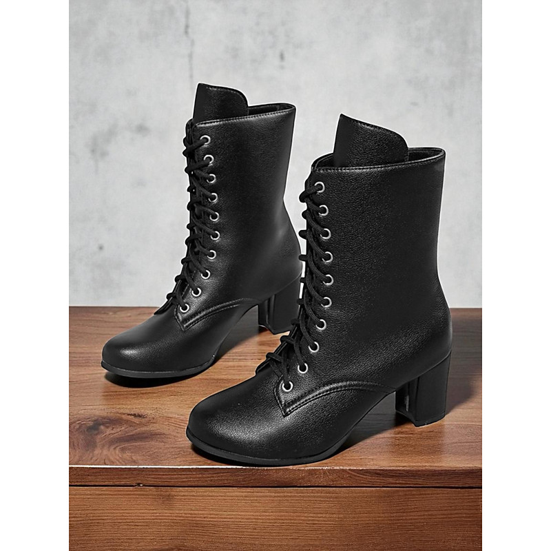 Women's Vintage Style Lace-Up Faux Leather Ankle Boots with Block Heel,Perfect for Casual Retro Outfits.