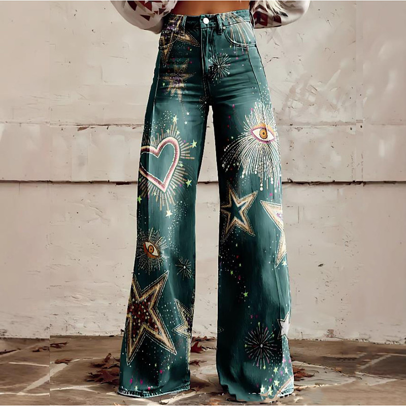 Women's Wide Leg Chinos Baggy Pants Fashion Streetwear Bohemian Full Length High Waist Floral Graphic Abstract Elastic Waistband Printing Comfy Soft Comfortable Micro-elastic Outdoor Vacation Street