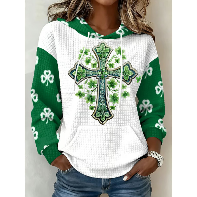 St Patrick's Day Lucky Women's Pullover Hoodie Sweatshirt Graphic Shamrock Warm Casual Print Long Sleeve Hooded Regular Tops Casual Street Print Green Spring Fall Winter