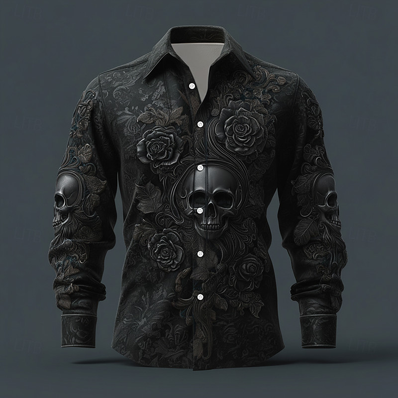Men's Skull Floral Print Day of the Dead Shirt Button Up Shirt Long Sleeve Vintage Retro Dark Gothic Style Outdoor Holiday Spring Fall Turndown 3D Print Collared Shirts Black Red Blue Orange Brown