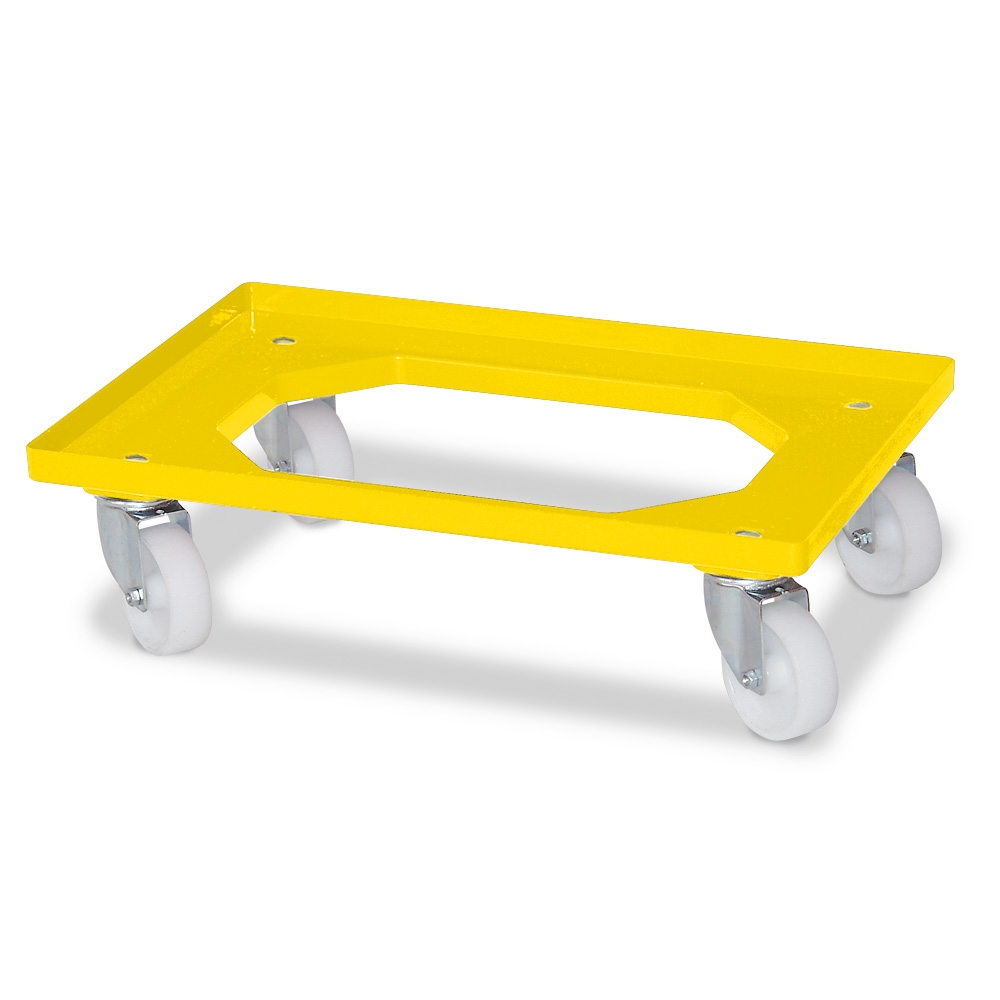 BRB Transportroller/Logistikroller für Eurobehälter 600 x 400 mm, gelb, weiße Kunststoffräder, Tragkraft 250 kg