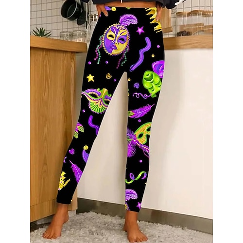 Per donna Leggings Attivo Vacanza Moda Lunghezza intera Vita AltaPantsCarnevale Grafico Geometrico Stampato Taglio alto Comodità All'aperto Confortevole Elasticizzato Vacanza Formale Streetwear Nero