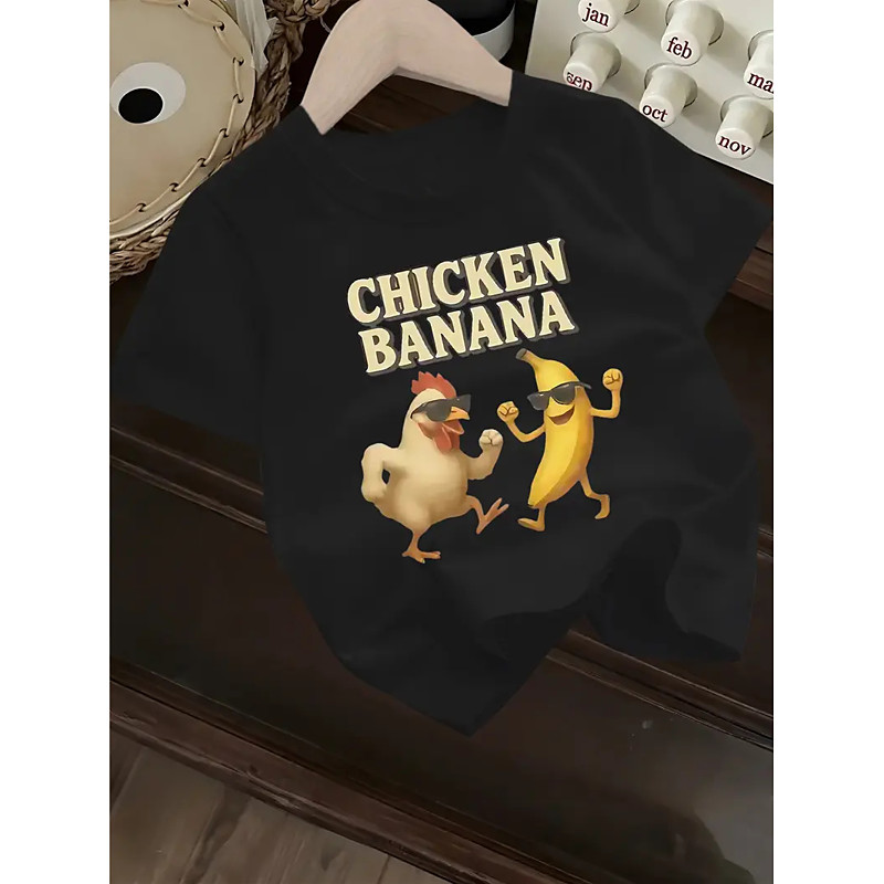 Cotton Kids Boys' Black White Red Chicken and Banana Graphic T shirt Blouse Crew Neck Short Sleeves Outdoor Dailywear Fashion Streetwear Designer Basic Summer Spring