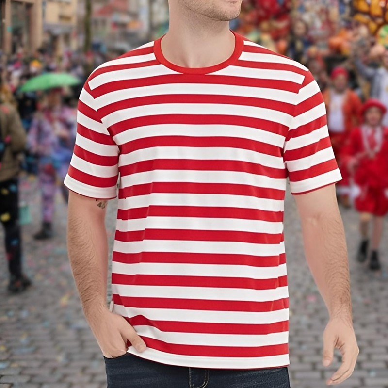 Carnival T-shirt Striped Shirt White and Red Striped Adults' Men's Carnival Party Casual Easy Carnival Costume Dress Up