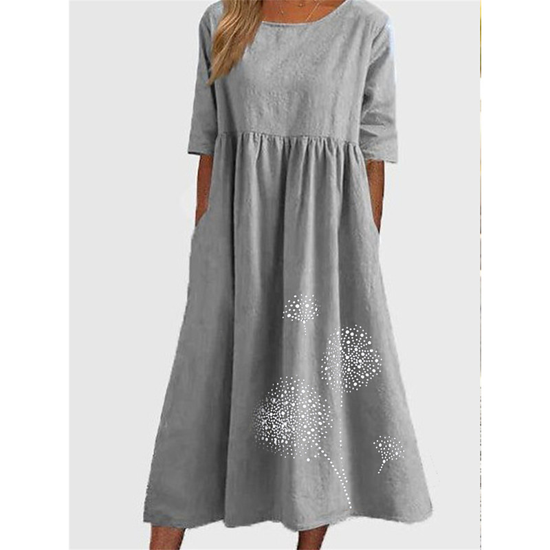 Women's Blue ArmyGreen Black Summer Spring Fall Maxi Dress Cotton Blend Casual Dress Tunic Dress Basic Casual Mature Daily Outdoor Vacation Loose Fit Dandelion Crew Neck
