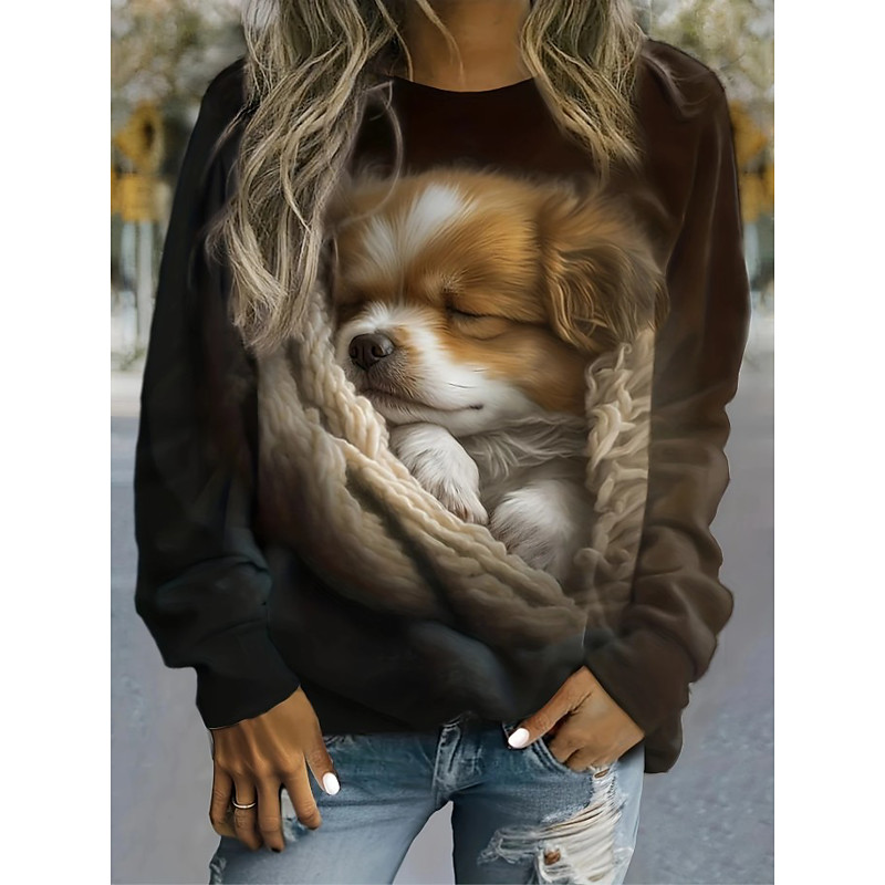 Women's Pullover Graphic Animal Warm Classic Casual Long Sleeve Crew Neck Regular Tops Casual Home Street Print Blue White Pink Orange Green Spring Fall Winter