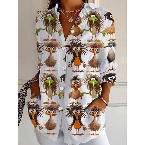 Pasqua Per donna Camicia Grafico Animale Elegante Bohemien Vintage Manica Lunga Colletto a Camicia Top Regolari Lavoro Quotidiano Bottoni Stampato Bianco Giallo Blu Primavera Autunno Inverno
