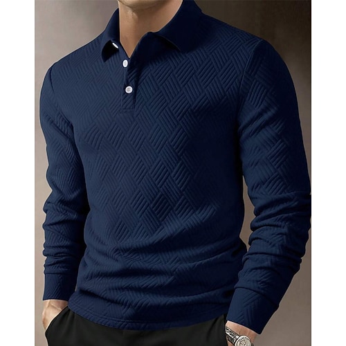 Per uomo Maglia da golf Polo da Golf Lavoro Casuale Bavero Manica Lunga Essenziale Moderno Semplice Jacquard Bottoni Primavera Autunno Vestibilità regolare Nero Bianco Blu marino Maglia da golf