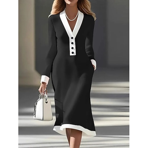 Per donna Abito Midi Abito a trapezio Elegante Vacanza Casual Lavoro Streetwear Data Vestibilità regolare Tinta unica Manica Lunga Scollo a V Blu Nero Bianco Rosso Primavera Autunno Inverno