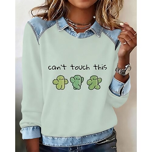 Per donna Felpa Pullover Floreale Grafico Semplice Elegante Caldo Classico Manica Lunga Bavero Top Regolari Casuale Casa Lavoro Patchwork Stampato Blu Giallo Chiaro Verde primavera Bianco Verde chiaro
