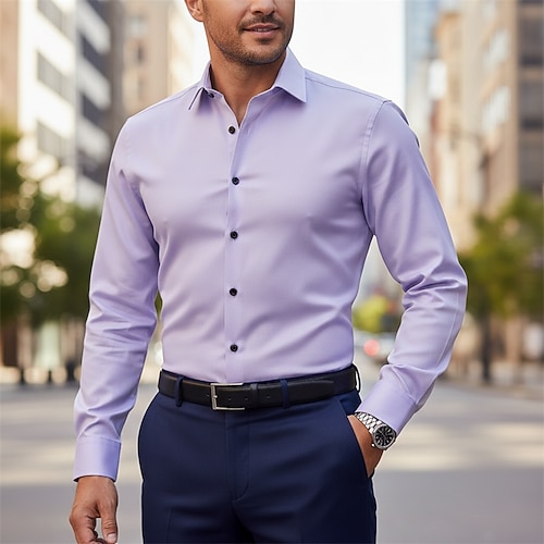 Per uomo Camicia elegante Camicia button-down Camicia non stiro Camicia con Colletto Semplice Matrimonio Lavoro Blu chiaro Bianco Rosa Blu marino Manica Lunga Colletto Tutte le stagioni Abbigliamento