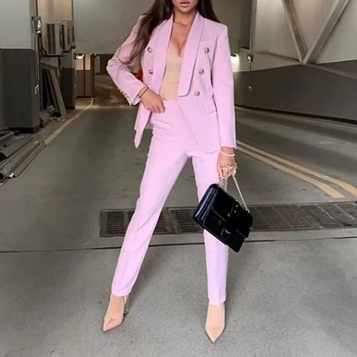 Per donna Attivo Moda Set di Pantaloni Blazer Abiti Manica Lunga Colletto a Camicia Semplice Dubbele Rij Knopen Vacanza Casual Quotidiano Nero Bianco Giallo Autunno Vestibilità regolare