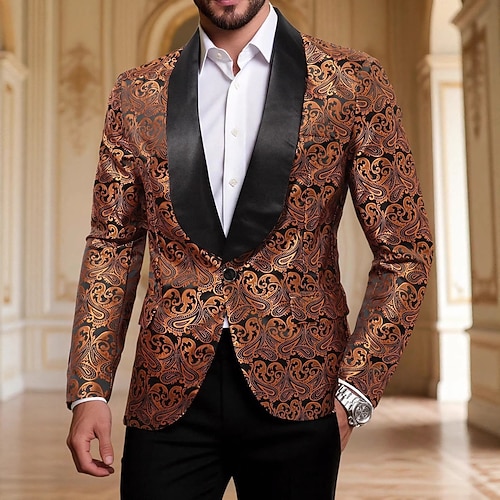 Per uomo Giacca Blazer Abbigliamento da sera Bar Bomboniera Vintage magro Poliestere Strisce e Quadri Glitter Antivento Monopetto Giacca Argento Oro Arcobaleno