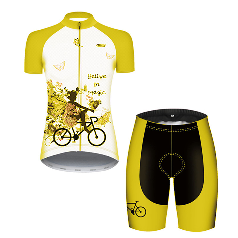 Women's Cycling Jersey with Shorts Short Sleeve Mountain Bike MTB Road Bike Cycling Blue Yellow Pink Butterfly Floral Botanical Bike Reflective Strips Sports Clothing Apparel