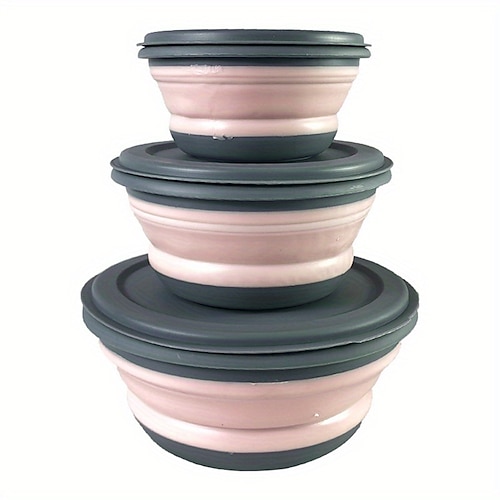 3-teiliges Silikon-Faltschüssel-Set – BPA-frei, auslaufsicher langlebig - zusammenklappbar erweiterbares Design für einfache Lagerung – perfekt für Campingreisen Outdoor-Abenteuer - leicht