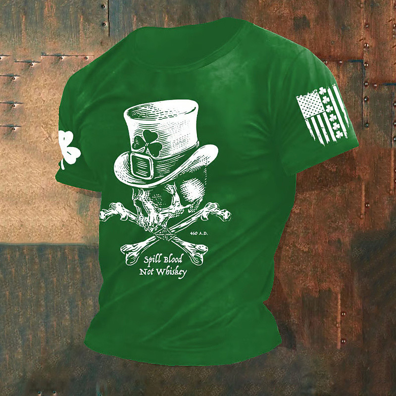 St. Paddy's Day St. Patrick St. Patrick's Day Men's Shamrock American US Flag Skulls T Shirt T shirt Tee Tee Top Short Sleeve T shirt 3D Print Crew Neck Shirt Sports Fashion Designer Daily Vacation