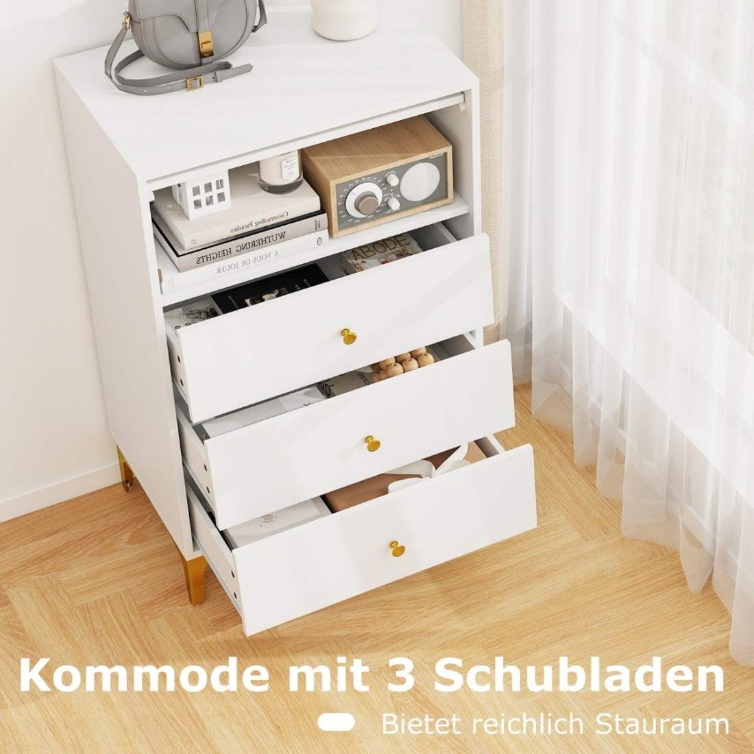 Hvitt oppbevaringsskap – 3 skuffer, flip glassdør