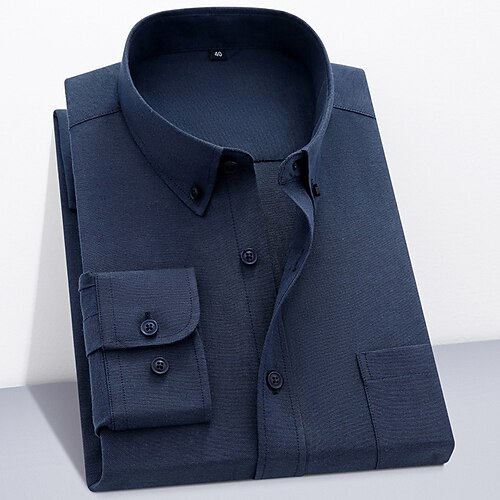 Herren Oberhemd Kragenhemd Knopfhemd Kurve Hochzeit Party Marineblau Königsblau Blau Purpur Langarm Kragen Ganzjährig Bekleidung Button-Down