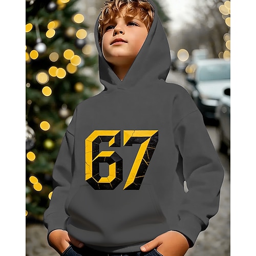 Unisex 3D Grafik Lustiger Slang 67 Kapuzensweatshirt Pullover Langarm 3D-Druck Frühling Herbst Sport Mode Streetwear Kinder 4-12 Jahre Mit Kapuze Lässig Täglich Outdoor Normale Passform