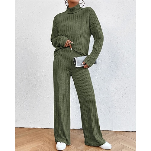 Per donna Moda Streetwear Blusa Set di gonne Bolero Top Manica Lunga Dolcevita Tinta unica All'aperto Lavoro Casuale Nero Verde militare Blu Autunno Vestibilità regolare