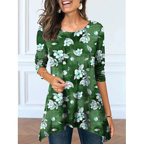 Per donna Tunica Grafico Piante Elegante Vintage Moda Manica Lunga Girocollo Top lunghi Quotidiano Weekend Stampato Verde primavera Rosso Viola Verde Estate Primavera Autunno Inverno
