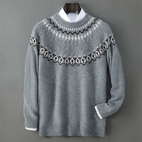 Per uomo Felpa Maglione Maglione a maglia A Coste Maglia Top Regolari Lavorato a maglia Geometrico Girocollo Moda Streetwear Casuale Abbigliamento quotidiano Abbigliamento Autunno Inverno Nero Bianco