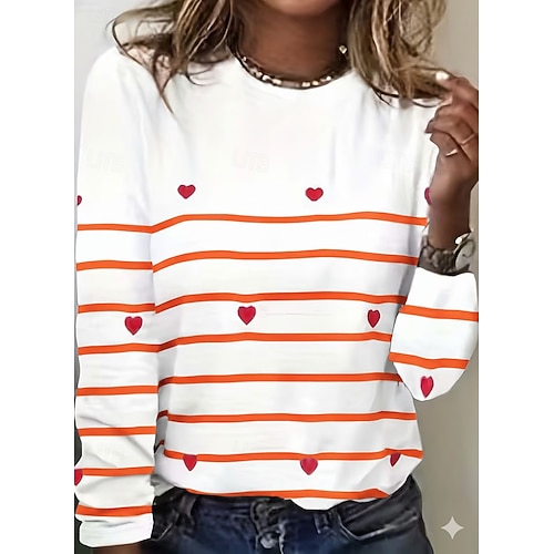 San Valentino Per donna Maglietta Cuore Grafico Moda Elegante Classico Manica Lunga Girocollo Top Regolari Quotidiano Weekend Stampato Bianco Arancione Rosso e Bianco Estate Primavera Autunno Inverno