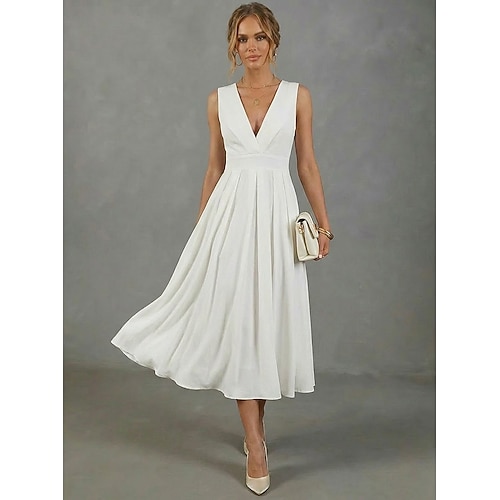 Per donna Abito Midi Abito Bianco Abito da Cocktail Elegante Moda Feste Ferie Vestibilità regolare Semplice Senza Maniche Scollo a V Bianco Estate Primavera