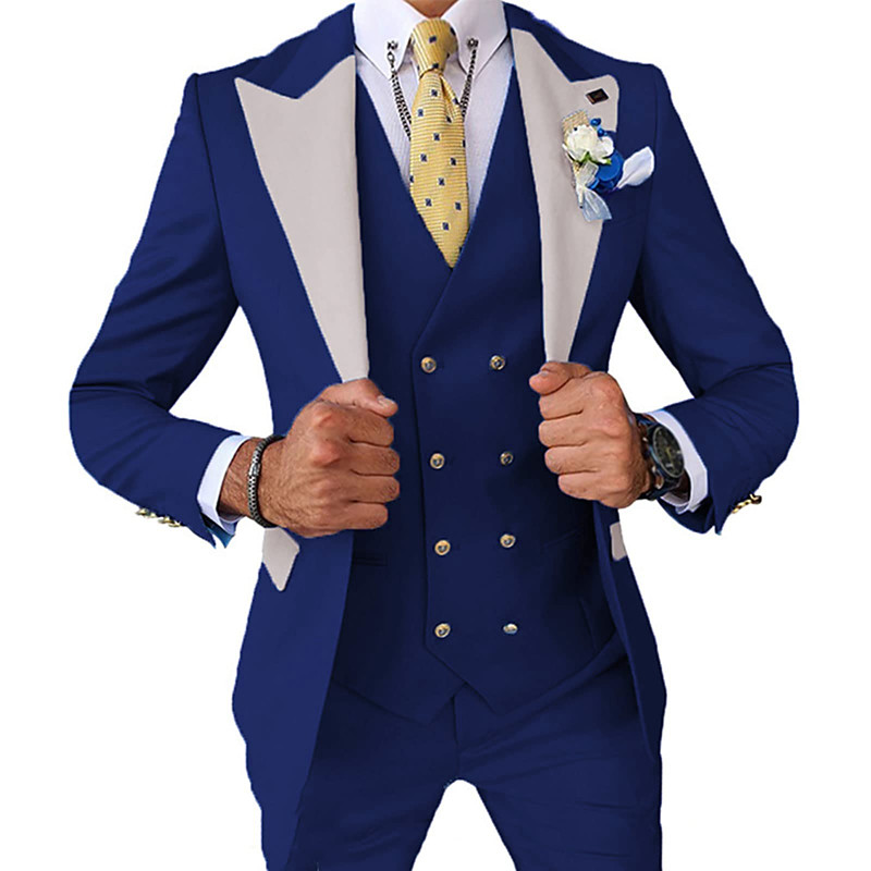 Men's Wedding Party Suits Closure collar Yellow Royal Blue Solid Colored Standard Fit 3 Piece Single Breasted One-button