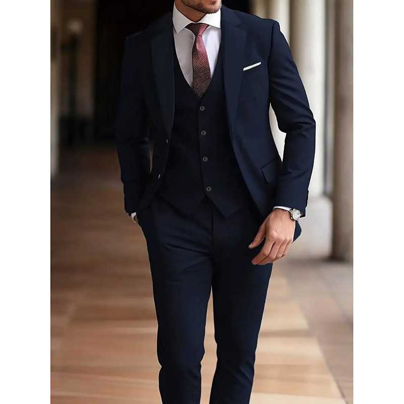 Men's Wedding Casual Business Suits Notch Lapel Black Navy Blue Daily Formal Solid Colored Standard Fit 3 Piece Single Breasted Two-buttons
