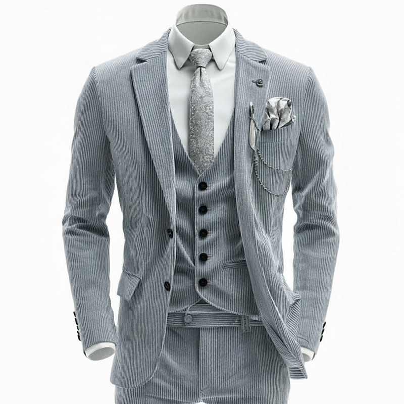 Men's Wedding Winter Wedding Suits Notch Lapel Light Grey Fashion Formal Solid Colored Standard Fit 3 Piece Single Breasted Two-buttons