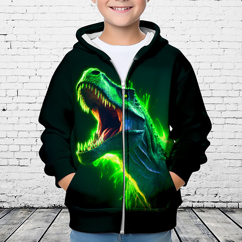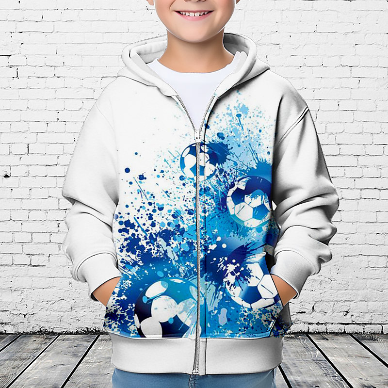 Boys 3D Football Hoodie Coat Outerwear Long Sleeve 3D Print Fall Winter Fashion Streetwear Cool Polyester Kids 3-12 Years Outdoor Casual Daily Regular Fit