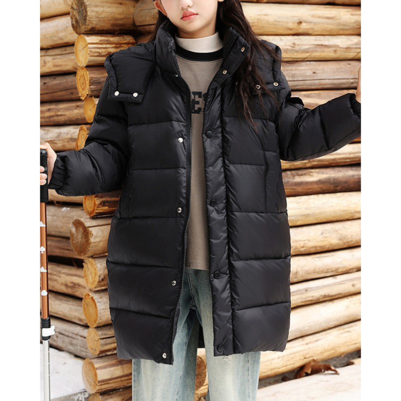 Kids Girls' Down Jacket Puffer Jacket Solid Color Sports Pocket Keep Warm Windproof Outdoor Coat Outerwear 4-12 Years Winter Black Purple Khaki
